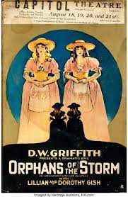 endeavors to find the helpless Louise, but cruel fate repeatedly thwarts her efforts. Director Griffith exploits their heart-wrenching dilemma with masterful skill, crowning the drama with political intrigue, spectacle, and his usual degree of social moralizing (baldly stating in the opening titles the parallels between the French Revolution and the then-recent Russian Revolution,