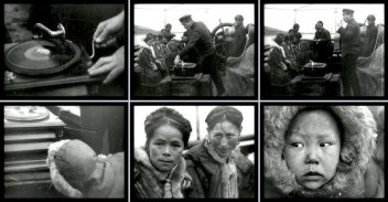 First and foremost, A Sixth Part of the World is an outstanding piece of filmmaking. Composed of a mix of mainly bespoke film interspersed with some stock footage, it presents a kaleidoscope of visually stunning images, for example, the vast reindeer herds crossing arctic wilderness, the long line of women collecting up newly shorn wool, the men loading sacks of grain on to a ship almost robotically, the view from above the bow of an icebreaker as it cuts through the frozen waters or the camera moving high overhead along a factory floor. As each theme is addressed the superb editing results in a gradual crescendo of images to firmly drive home the point being made. And Vertov also takes the opportunity to slot in one or two clever visual