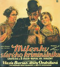claiming to be a mass murderer who has killed off a series of old girlfriends. He eventually escapes to the city with Fifi, who is still anticipating life as a gangster’s moll. While she pleads with Pondelícek to take her to a gangster’s lair, the real Kanibal the Robber (also played by Vlasta Burian) mounts a daring jewel