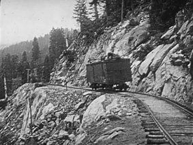 henchman knocks away the supports and the wagon speeds away down the steep railway incline. Don comes riding to the rescue and dramatically saves Ruth in the nick of time before the railway wagon plunges into the abyss.