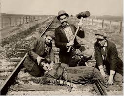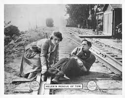 in ringlets, crinolines a billowing, probably tied to a railway track and just waiting for the silent hunk to come and save them. OK, so Mabel Normand found herself in just this situation in Barney Oldfield’s Race For Life (1913) but this was more a parody from the Mack Sennett stable so can’t really be seen to be making a point. In fact, by the 1910s it was just as likely