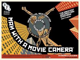 their cinematic endeavours. In 1929 they jointly produced (along with film editor Elizaveta Svilova) what would widely come to be known as Vertov’s masterpiece, Man With A Movie Camera. Yet it is in fact Mikhail Kaufman who is literally ‘the man with the movie camera’ of the film, climbing up precipitous chimney stacks, hanging from trains or dangling from bridges in order to to catch that perfect shot