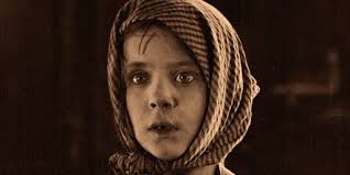 Gabrio would continue making films into the 1940s, although never again achieving a star role. Amongst subsequent roles he is perhaps best remembered as second lead to Jean Gabin in Pepe le Moke (1937). Jean Toulout is convincing also as the stiff and upright Javert, unable to reconcile his duty with his debt to Valjean. He would go on to appear in Fescourt’s Monte Cristo (1929) and had made over 100 films before his retirement in 1952. Although Russian-born Sandra Milowanoff was excellent as Fantine, the determined single-mother of Cosette (right), she was less convincing in the dual role of the adult Cosette. Milowanoff was already a