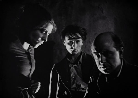 scene in which the latter two brow-beat Caderousse into murdering the jeweller (right). Without a single word being spoken, not an inter-title visible, their intent is patently clear simply through their looks, stares and physical presence and Caderousse visibly wilts under this intense psycholigical pressure.