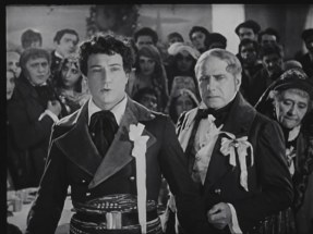 Over a drink, Caderousse tells Mondego of an unscheduled stop Dantes made to the island of Elba (where the former Emperor Napoleon is imprisoned) during their voyage and Mondego passes this information on anonymously to the authorities. At Dantes and Mercedes’ wedding, officials burst in and Dantes is arrested as a Bonapartist. Interrogated by prosecutor Villefort (Jean Toulout), Dantes reveals that before his death, the Pharaon’s captain bade him collect a letter from Elba and deliver it to a man known as Noirtier in Paris. Villefort realises to himself that Noirtier is his own father, a