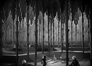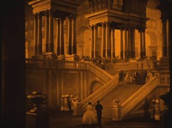 sumptuously designed and decorated. While Dantes’s Arab-themed palace on Monte Cristo island (above left) may have looked just a tad over the top, it was certainly visually stunning. Equally impressive was the set of his Parisian residence (above right) where Mondego is humiliated. Built on an enormous scale, the matt-ing between actual set and painted backdrop was just seamless. Then there was the evening at the opera (left), where Monte Cristo makes his grand entrance. I was caught in two minds as to whether this was an actual opera house or a studio set, deciding eventually on the latter, but it was again built on a vast scale. Particularly striking were the chandeliers as they were raised into the
