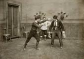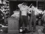 The film follows a very merry gent as he walks home after an evening out, struggles with the coat stand, engages in battle with a living room picture and struggles to get undressed for bed. Despite its stick-thin plot line, this film was just an amazing delight. The director, J H Martin (about whom I can find no more information) used every then current cinematic trick to highlight the gent’s inebriated progress. Tilting the camera from side to side, we see the drunken gent’s world sway. Stop motion footage sees him ‘slide’ up the stairs while an inverted set and at times inverted camera sees him walking on the ceiling. But more than that, the film is a surrealist treasure trove. The street lamp magically shrinks so the gent can light his cigarette from it, the coat stand turns into the embrace of a woman, crenelated battlements in the picture on his wall suddenly open fire on the gent but hastily raise the white flag when he fires back and every time the gent gets undressed he suddenly finds himself fully re-clothed. This was a film that Bunuel and Dali could have been proud of! There was even a first take on the real-person-in-the mirror sketch developed by Max Linder in Seven Years Bad Luck (Dir. Max Linder, US, 1921) and perfected by the Marx Brothers in Duck Soup (Dir. Leo McCarey, US, 1933).
