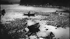 The wedding day arrives and preparations are under way when Gjermund, bitter at being rejected by Berit, cuts loose the boat used by the Braatens to cross the river. Without it, Tore and his parents cannot reach the church. Puzzled at Tore’s absence the wedding party come to the opposite bank from where they can see the Braatens. Ola sends across a horse for Tore but on the return journey he is washed into the fast flowing river (image, right) and carried
